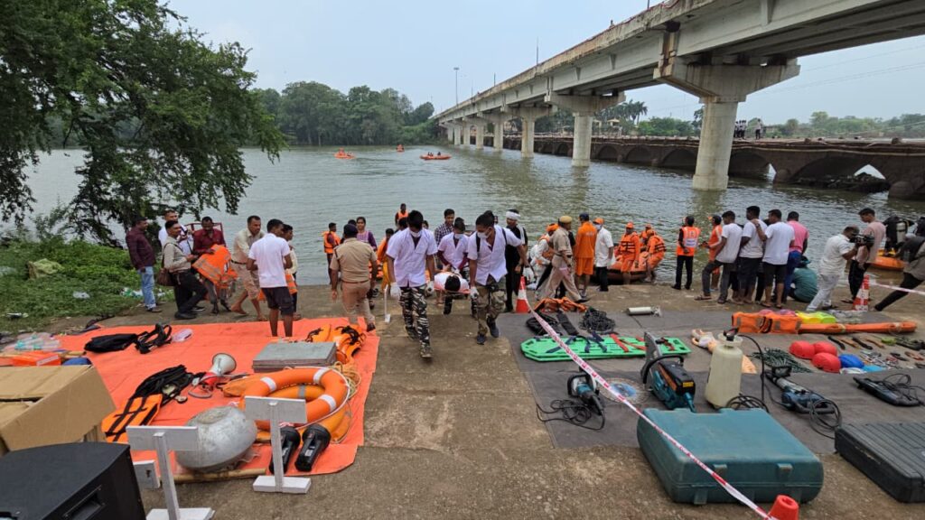 दुर्ग। छत्तीसगढ़ शासन द्वारा राज्य स्तरीय बाढ़ आपदा मॉकड्रिल का आज आयोजन किया गया। जिसमें जिला कलॆक्टर के द्वारा एवं इंसीडेंट कमांडर ए.डी.एम के नेतृत्व में शिवनाथ नदी के तट पर एसडीआरएफ एवं एनडीआरएफ द्वारा गांव में बाढ़ आने की वजह से गाँव पर फंसे चालीस से अधिक लोगों को रेस्क्यू किया गया, कुछ ग्रामीण पेड़ों में पानी के बहाव के कारण पेड़ों में फंसे थे जिन्हें रेस्क्यू किया , और पुल टूटने के दौरान किस तरह रेस्क्यू किया जाता है। मॉकड्रिल द्वारा प्रदर्शित किया गया जिसमें दुर्ग में पदस्थ प्रशासनिक अधिकारी पहुंचकर इस मॉड्रिल को सम्पूर्ण विधि से आयोजित किये।